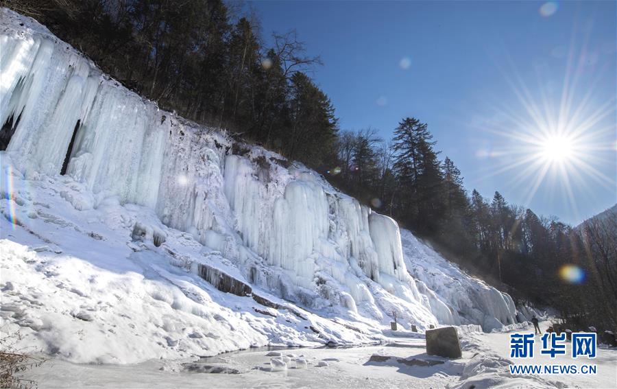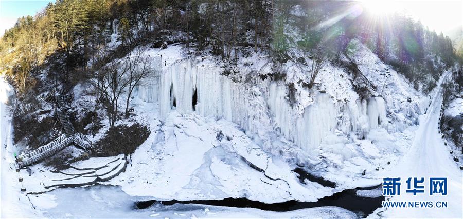 位于吉林省长白县的十五道沟望天鹅风景区,属长白山余脉。这里生态原始,古树参天,瀑飞泉涌,怪石嶙峋,素有“北方九寨沟”的美誉。冬日里,在形态各异的岩墙、岩柱间流淌的溪水因低温凝固,仿若时间冻结,一切流动的美便以湍急之势凝于石壁,形成了半冰半水、亦静亦动的冰瀑景观,尽显大自然的鬼斧神工。新华社记者张楠/摄
