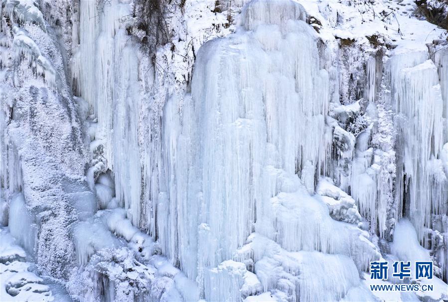这是在吉林省长白县十五道沟望天鹅景区拍摄的冰瀑景观(1月3日摄)。新华社记者林宏/摄
