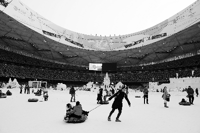 “相约2022”冰雪文化节开幕当日,游客在“鸟巢”内的雪圈广场上玩耍。新华社记者鞠焕宗/摄