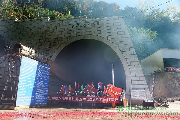据了解,由中铁八局集团昆明铁路建设有限公司承建的玉磨铁路站前13标段五屏山2号双线隧道于2017年5月1日开工,至2019年1月6日全线贯通,历时615天。