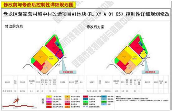 蒋家营村城中村改造项目A1地块规划调整对比图(源于昆明市规划局)