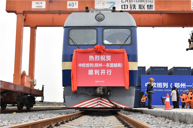 2018年12月7日,郑州至东盟越南的中欧班列开行。(郑州国际陆港开发建设有限公司供图)