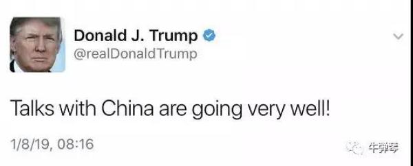另一个细节,也很有意思。北京时间8日晚上,就在各方焦急等待谈判进展之时,那边是华盛顿时间8日凌晨,特朗普突然发了一条推特,很简短,只有七个单词,翻译过来就是: