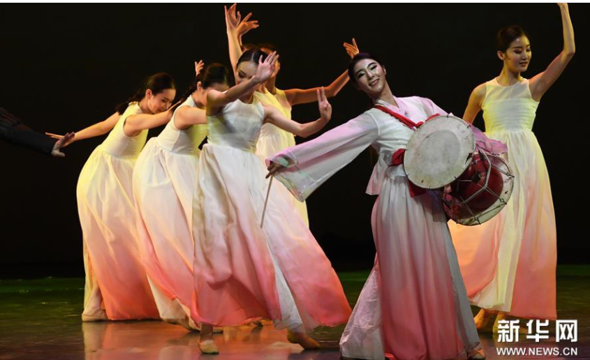 1月9日,大型全息舞台剧《阿里郎 大地之歌》在兰州音乐厅上演,该剧由中国和韩国演员共同出演。 新华社记者 范培珅/摄