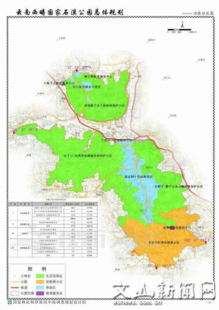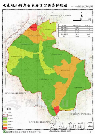 拟建设的西畴国家石漠公园总面积1784.9公顷,其中:生态保育区1170.9公顷,宣教展示区358.0公顷,体验区250.9公顷,管理服务区5.1公顷。公园主要以西畴县兴街镇三光片区国家级石漠化治理示范点为核心,石漠化治理示范基地和“西畴精神”为主题,结合石漠生态休闲旅游开发为建设目标。