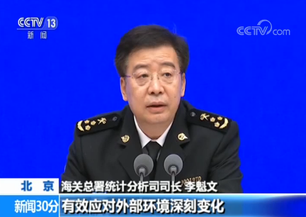 海关总署统计分析司司长 李魁文:一系列促进外贸稳定增长的政策措施,有效应对外部环境深刻变化,对外贸易总体平稳,稳中有进,进出口规模创历史新高,有望保持全球货物贸易第一大国的地位。