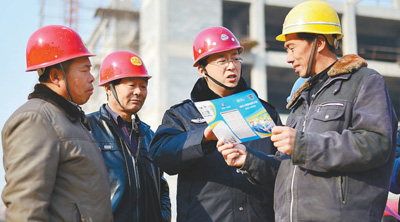 河北邢台桥西区劳动保障监察大队执法人员向农民工提供法律咨询。本报记者史自强/摄