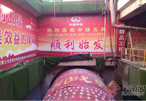 昆明地铁4号线又有进展!近日,伴随着“韶山七号”盾构机巨大的轰鸣声,在一片欢呼声中,由中铁五局承建的昆明地铁4号线小菜园站-火车北站区间左线盾构在小菜园站顺利始发。