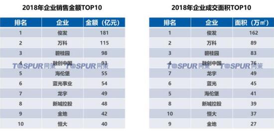 根据云南同策报告,昆明房企2018年销售金额排行榜冠、亚、季军分别为俊发、万科、碧桂园。俊发年度销售金额181亿、成交面积162万方;万科销售金额15亿、成交面积89万方;碧桂园销售金额为98亿、成交面积83万方;融创排名第四,销售93亿、成交76万方,碧桂园比融创度多销售了5个亿。