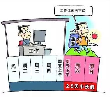 6686体育综合 日前,河北省政府办公厅印发方案,提出落实带薪休假制度。鼓励错峰休假和弹性作息,在有条件的地区探索实行周五下午加周末的“2.5天小长假”政策措施。