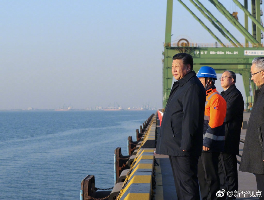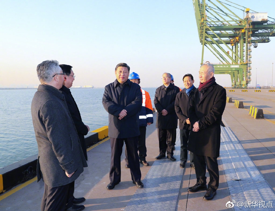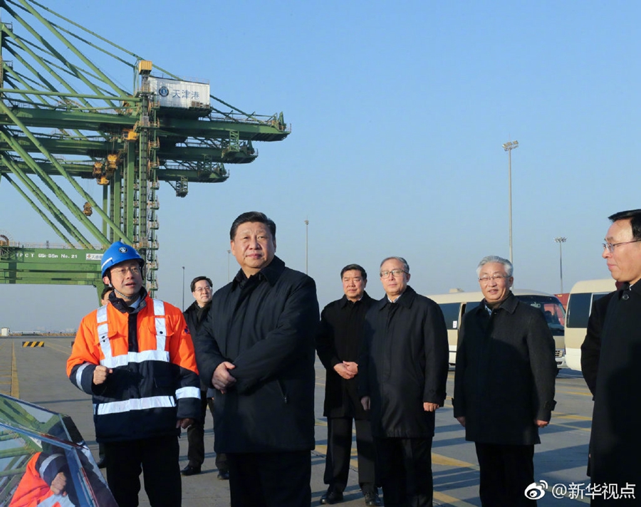 17日下午,正在天津考察的习近平来到天津港码头。码头岸边,一艘巨型货轮正在通过塔吊卸货。在调度指挥中心,习近平听取了天津港服务京津冀协同发展等情况介绍。他强调,国家要发展,经济是第一要务。经济要发展,交通要先行。新中国成立70年、改革开放40年,我国航运事业、港口建设发生了沧桑巨变,取得了显著成果。我们要做好实体经济,实体经济做大做强了,我们才能够扎扎实实、名副其实攀登世界高峰,实现中华民族伟大复兴。我们都有这样一份责任。(新华视点 记者张晓松 鞠鹏 丁林)