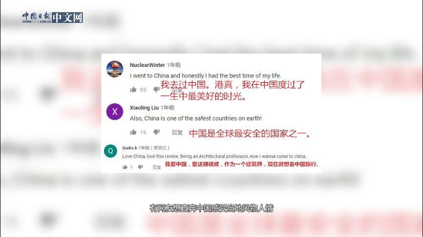 2018年12月23日,旅游博主“Travellight”在YouTube发布题为“我太想念中国”的视频,该视频点击量高达12.1万次。她在视频中表示,刚刚离开中国几个月,就迫不及待地想回来。