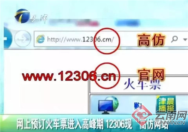 不法分子制作出高仿真的山寨12306网站,以网络钓鱼方式诈骗,这些网站在页面布局、域名上与12306网站非常相似。当用户“成功购票”后,款项打给了不法分子设定好的账户,用户个人信息也被盗取。