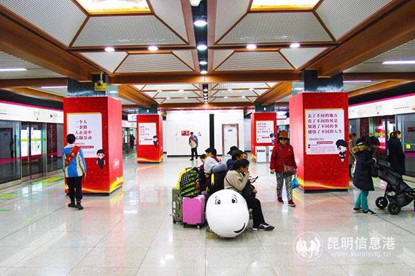 6686体育讯 春运期间,2019年春运第一天,由昆明市网信办、昆明航空有限公司(以下简称“昆明航空”或“昆航”)、昆明轨道交通有限司(以下简称“昆明地铁”)共同打造的“2019,一起回家”新年公益主题地铁站正式亮相,旨在通过独具特色的新年布置及春节装饰、触动人心的暖心文案、展示云南之美的摄影作品等展示春城精神,倡导文明出行,温暖春运旅客回家路。
