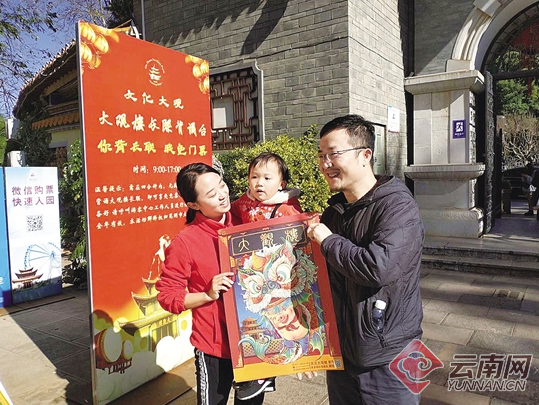 “千门万户曈曈日,总把新桃换旧符。”昨日上午,由春城晚报联手昆明市大观公园推出的“年画欢乐送”活动在大观公园展开,活动受到市民、游客的追捧,2000多幅大观公园专制年画和100副对联很快被领完。据了解,过年前都可以领大观公园专制年画,送出10000幅为止,想要的市民、游客可要抓紧了!