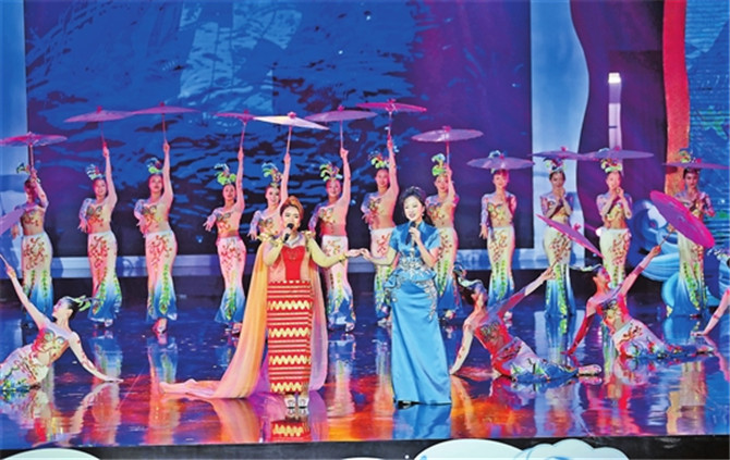 中缅艺术家深情演绎《共饮一江水》、《有一个美丽的地方》等经典歌曲。