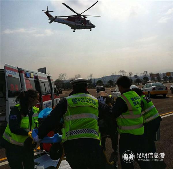 6686体育讯 记者周智宇 1月21日,由中国人民财产保险股份有限公司云南省分公司、云南省公安厅交警总队高速公路交巡警支队和昆明市第一人民医院和共同举办的“携手警保医 守护春运路”高速公路空地应急救援演练活动在昆明举行。