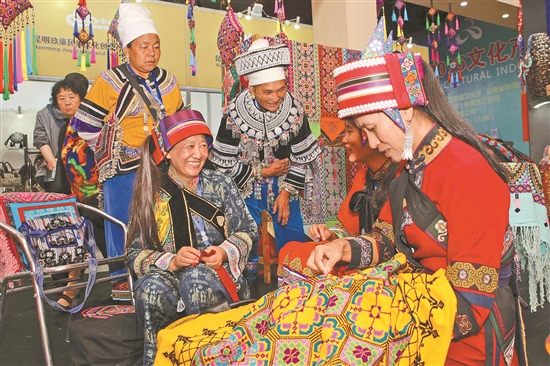 省政协民宗委主任李红民介绍,目前,全省刺绣协会共有476家,据不完全统计,仅昆明、楚雄就有12万名妇女从事刺绣生产。民族刺绣已成为农村妇女们增收致富新的突破口和增长点。