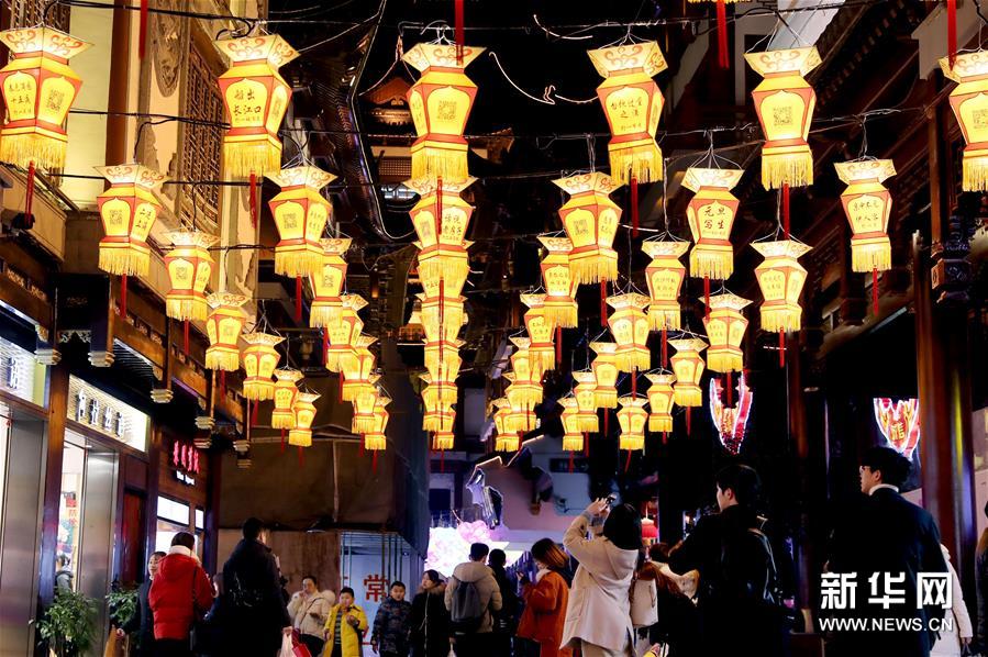 31月21日晚,游客在豫园赏灯。当晚,2019年豫园新春民俗艺术灯会正式亮灯。本届灯会将持续至2月22日,为期33天,预计将迎来数百万海内外游客赏灯迎新。 新华社记者 刘颖/摄