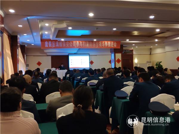 作为滇维保安公司今年来召开的第一次重要会议,公司负责人要求,全体保安要深入认识扫黑除恶专项斗争的重要意义,切实把思想行动统一到市公安局关于开展扫黑除恶专项斗争的部署要求上来。要以高度的责任感,认真履行职责,协助公安机关与黑恶势力斗争到底。同时,公司各部门主要负责人要结合近年来涉黑涉恶犯罪的新特点、新动向,按照市公安局梳理出来的九类黑恶势力的表现形势做出具有针对性的工作安排,及时传达到每一位保安员,充分发挥保安员职能作用,多措并举提升涉黑涉恶线索的收集。保安员也要积极向市民发放相关宣传材料,发动人民群众积极参与扫黑除恶专项斗争,举报涉黑涉恶违法犯罪,积极为昆明市推进区域性国际中心城市建设和创建平安度假创造良好的治安环境。