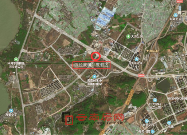 派拉蒙昆明国际度假区大概位置(图中红圈所示)