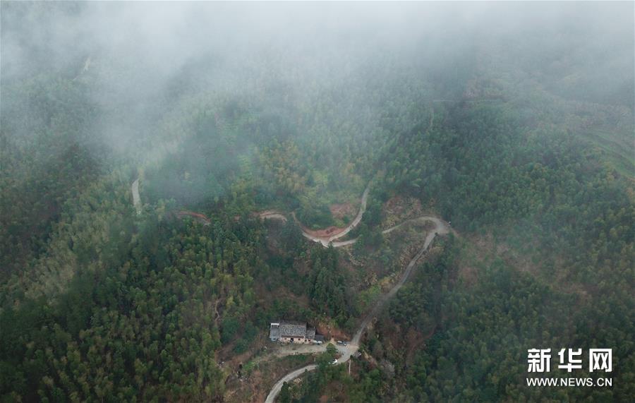 位于龙泉市牛头岭村群山之中的“七分醉”工作室(1月15日无人机拍摄)