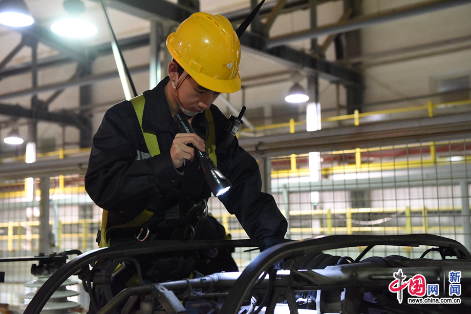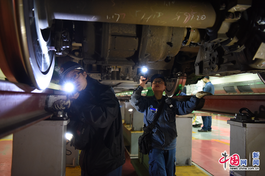 春运期间,为保证动车组“健康”上线,昆明车辆段动车所职工从车顶受电弓、车厢客服装置到车底转向架,对每一列朝发夕至的动车组按照分工进行全面细致的“体检”。高铁检修的“4S店”内,他们在白与黑的交替中,心怀敬畏与责任,对安全工作精益求精,确保着动车组运行安全,为旅客的平安旅途保驾护航。(中国网发 韦济飞 董利峰/摄)