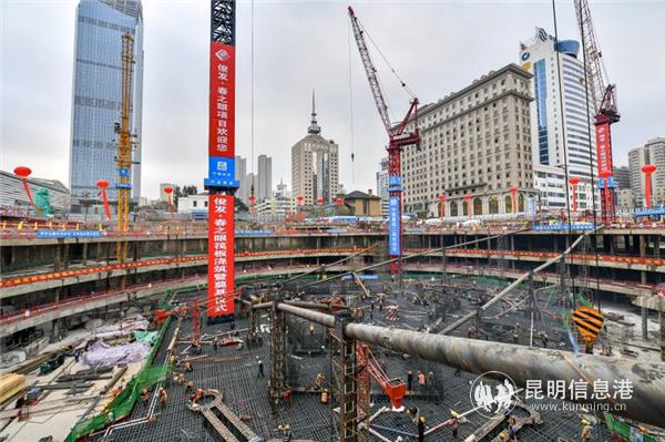 筏板浇筑是地下室结构施工的第一步,标志着云南第一高楼俊发春之眼项目正式开始“长个子”,未来主塔将有77层,高407米。