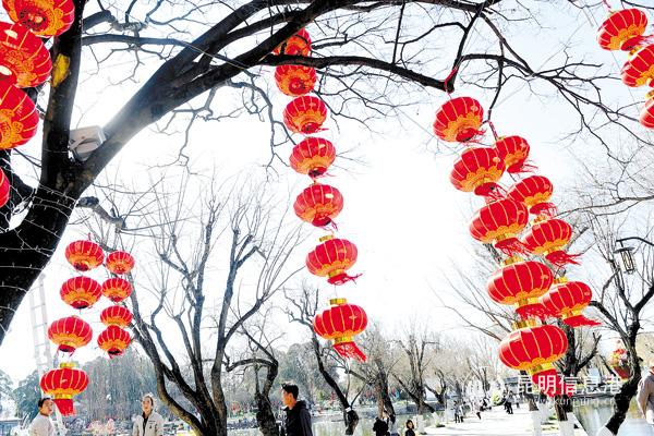 6686体育讯(昆明日报) 春节将至,昆明全力营造文明祥和欢乐喜庆的节日氛围,各种造型鲜花布景将街头装扮一新,公园、商场、主要道路上大红灯笼高高挂,烘托出红红火火的过节气氛。