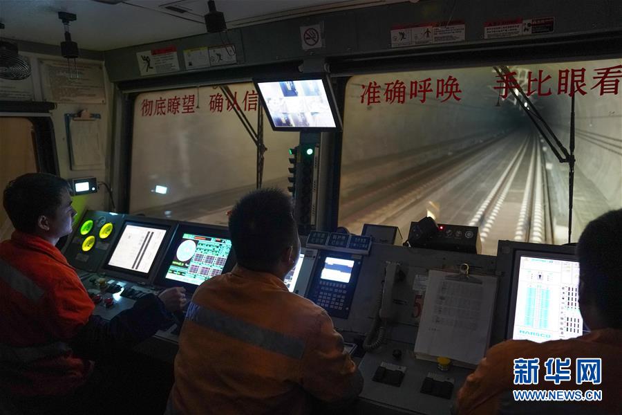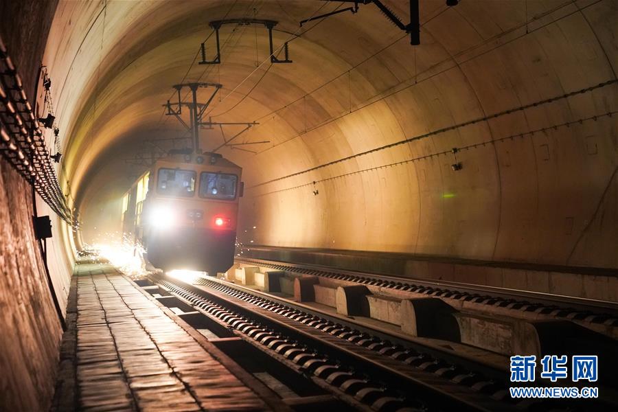 钢轨打磨车“10706”在占马山隧道进行打磨作业(1月26日摄)。新华社发 殷晓圣/摄
