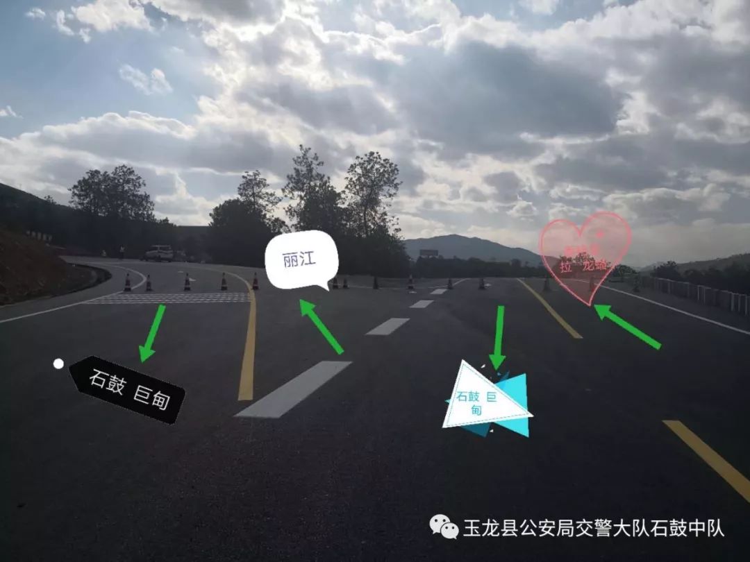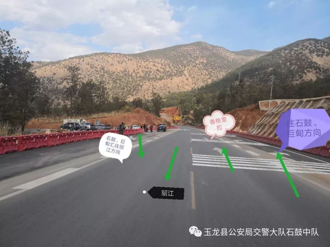 3、行经石鼓支线交汇路口后从石鼓往丽江方向行驶路线:由石鼓支线交汇口右转汇入大丽高速公路松园桥连接线,禁止左转。