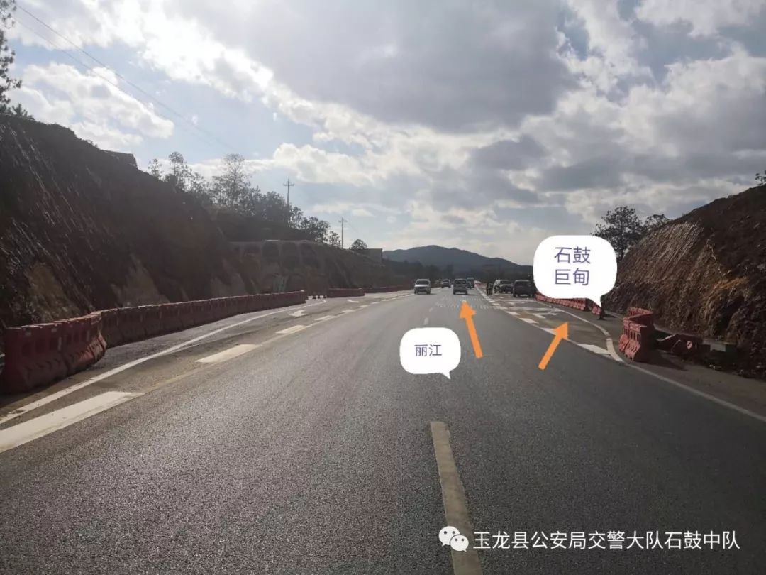丽香高速石鼓支线目前路面施工已基本完成,但附属标志标牌和道路防护设施施工尚未全部完成,存在一定通行安全隐患,但由于春节将至,为了最大限度方便过往车辆和沿江一线人民群众的出行,经相关部门共同研究决定,同意石鼓支线施工路段于2019年01月28日08时提前临时通行。石鼓支线路段多弯、长陡坡、路面与外侧落差大、多方向车辆交汇,施工未全面完成期间存在交通通行安全隐患,特此玉龙纳西族自治县公安局交通警察大队向行经此路段的广大交通参与者进行相关安全提示: