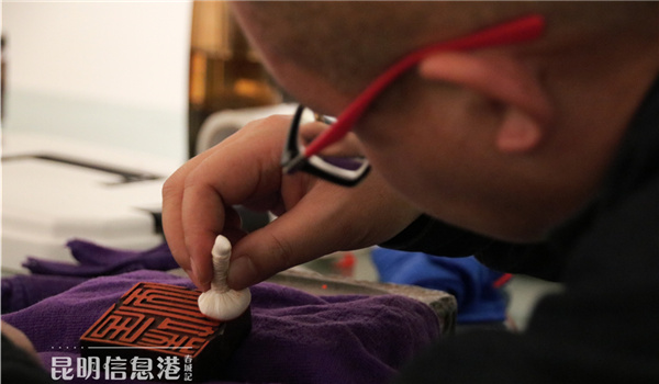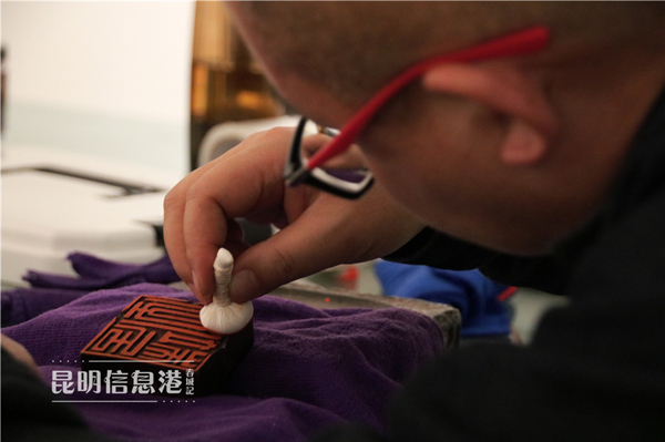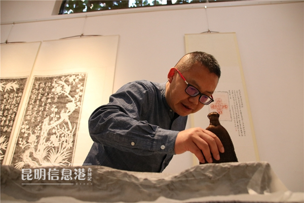 一方古砖、一张宣纸、几片淡墨,通过布制拓包不断捶按,层层叠加,纸墨之间拓印渐渐显露,这也是中国古代复制和保存文献资料的一种重要方式。在昆明世博园非遗传习馆内,44岁的张衡是这里的拓艺师,他的工作就是通过双手向人们展现出器物另一种形式的美,以独特的印记标注历史。