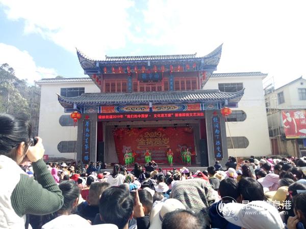 文化中心广场,由街道各村委会、村小组、社区组成的12支文艺队伍准备了舞蹈、花灯、扇舞、旗袍秀、民族舞等14个文艺节目,让前去踩街的群众感受到浓浓年味,台下围满了里三层外三层的观众。在文艺表演之外,还有《回顾过去?展望未来》以及《我与改革开放共成长,一起助力中国梦》的演讲,让群众感受祖国的发展。最后,还举行了扫黑除恶有奖问答活动。丰富多彩的春节踩街文艺演出活动赢得了辖区群众一致好评,为老百姓奉上了精神文化大餐。整台演出活动充满着吉祥、喜庆、欢乐的元素,高潮不断。