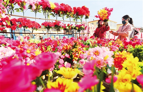 一月二十九日,山东省枣庄市山亭区山城街道农民在集市上选购年货。张强/摄(中经视觉)