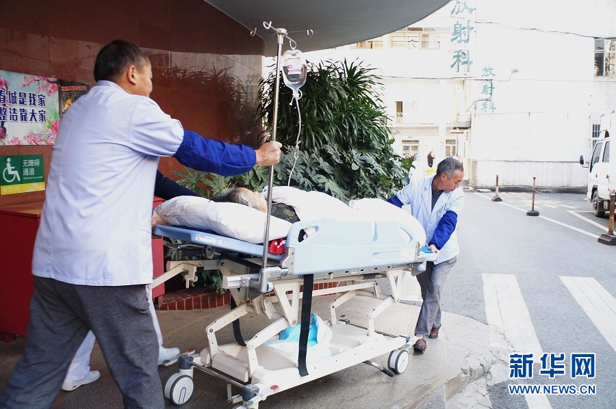 图为王庭昌和曹德陆把患者送到检查室。(新华网潘越/摄)