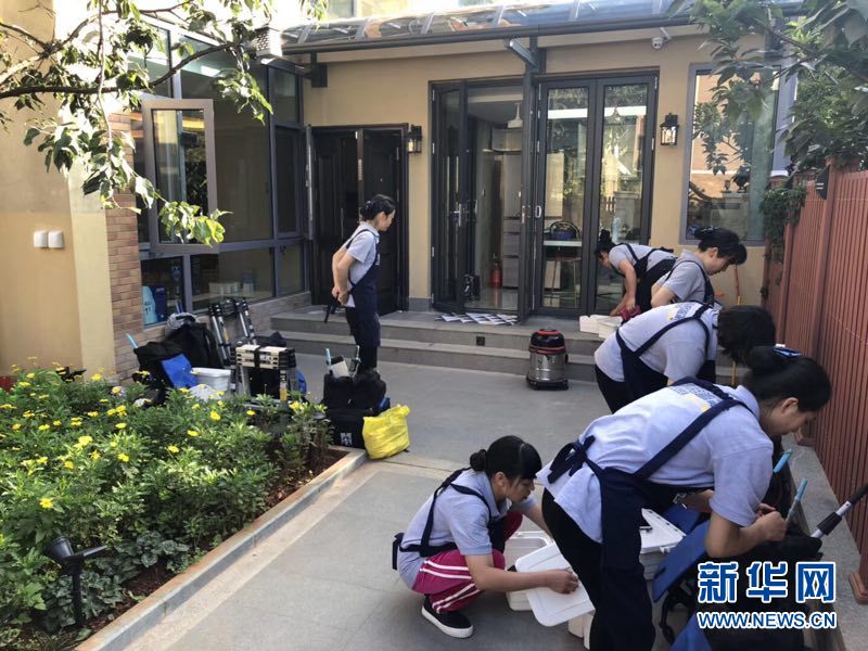 图为家政人员在清扫。(昆明海格家政服务有限公司供图)