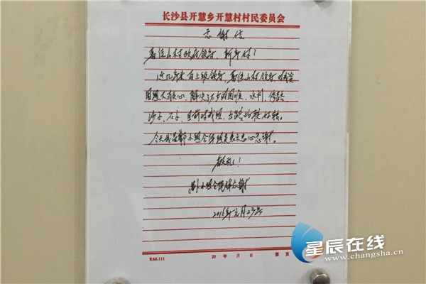 (一位老人在生前写的感谢信。星辰全媒体记者 柳佳路/摄)