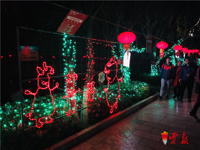 接汉疑星落,依楼似月悬。1月31日晚,城市之光——2019第十二届昆明海鸥文化节新春灯会正式亮灯,数千盏多彩绚丽的各式花灯和灯笼,把整个翠湖公园装点得五光十色,年味浓厚。