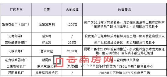 实际上,在云南房网所掌握的昆明市区传统制造企业,除了昆烟等极少数几家没有搬迁改造计划外,其他基本都被列入改造范围,其中仍在正常经营的企业大多将厂区迁往工业园区,旧厂区被开发;而无法生存的老工厂则大多破产关门,旧厂区要么被开发为房地产项目,要么暂时改变用途,成为文创园区。(云南房网 作者严加琴)