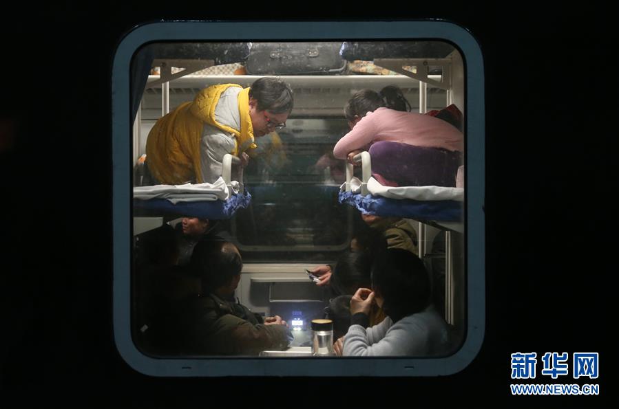 2月1日凌晨,旅客乘坐由上海南发往重庆北的K4085次列车。此趟列车是由上海始发的第一列春运列车。当日,2018年春运正式启动。新华社记者 丁汀/摄