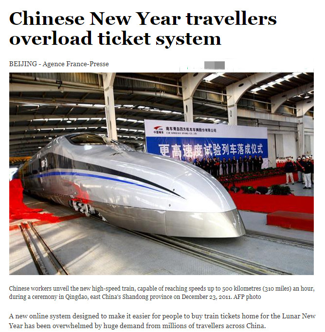 2012 :日均发送旅客近600万、高铁让出行更便利、火车订票系统过载