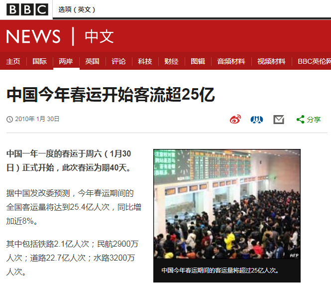 下面,就让我们来看看十年来外媒是如何具体报道春运的。