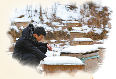 重庆巫溪县天元乡新田村村民周子微清扫蜂巢。李美华 摄
