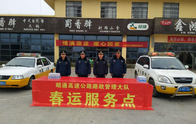 临近春节,昭通境内高速公路上往返车辆明显增多,昭通高速路政大队为了给春运期间返乡人员及过往车辆提供更好的便利服务,从1月30日至春运结束,每天派3名路政员在昭通南服务区设置的“春运服务点”为返乡人员及车辆提供便民服务。