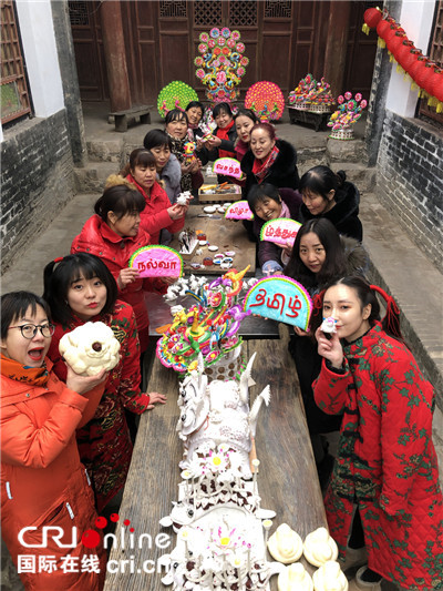 近日在中国历史文化名村党家村,韩城当地花馍艺人为外国网友献上一场“蒸花馍迎新春”的视频直播秀。直播中,花馍民间艺人用一双巧手制,凭借让人叹服的面塑技艺,制作了多个栩栩如生的面塑作品吸引了外国网友的眼球,引来连连点赞。(记者赵江 张同义 张捷 廖亮 贺丽媛)