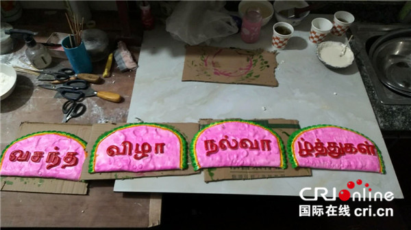 为网络直播节目特别制作的外文版“新春快乐”。(摄影:张捷)