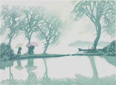 浙江美术馆藏陆放版画《西湖春雨》。