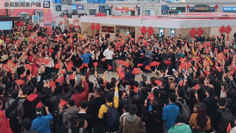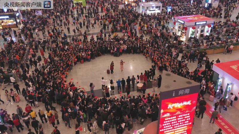 清新悦耳的演奏,深情激昂的歌唱,从小家的团聚幸福到大家的繁荣昌盛,快闪活动让旅客惊喜感动之余,中央广播电视总台快闪现场为了旅客送“福”,温暖回家路。