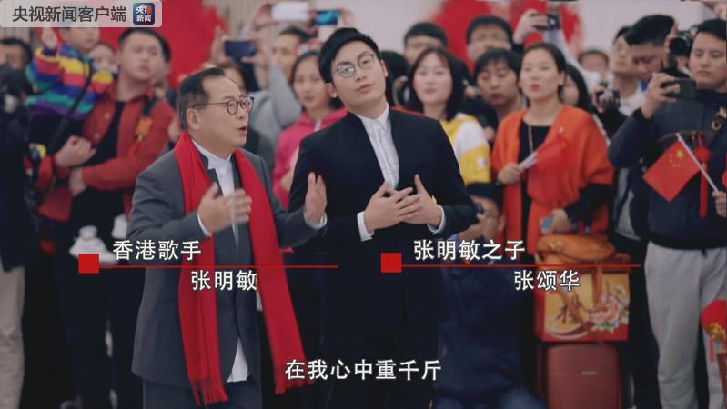 “我和我的祖国,一刻也不能分割。无论我走到哪里,都流出一首赞歌……”,现场燃爆,一片片惊讶的欢呼声,是谁燃起了大家的激情?神秘嘉宾竟然是张明敏和他的儿子张颂华。父子倾情演唱,用歌声表白祖国。儿子的名字也饱含着张明敏的赤子之心,饱含着对祖国的一片深情。